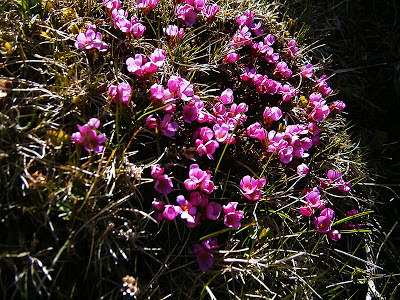 • Minuartia recurva. Solo pudimos observar lo que es la planta sin sus blancas flores pentapétalas. Es abundante en zonas secas y frías de los prados de cumbres montañosas formando almohadillas en las que acumula agua y calor para poder sobrevivir.